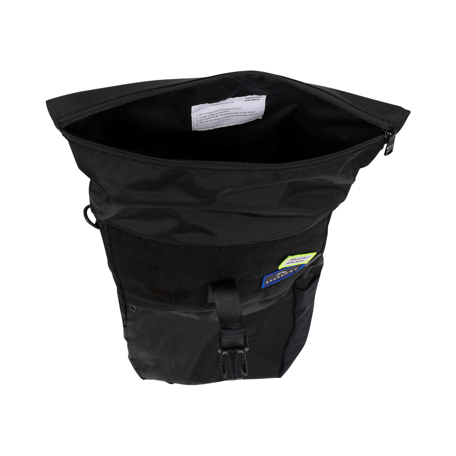 · Roll-top closure with buckle for easy opening